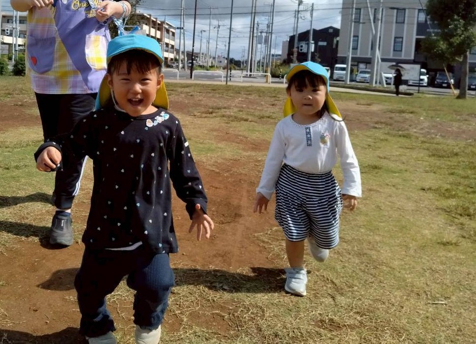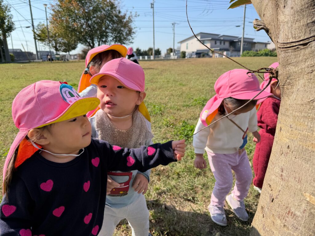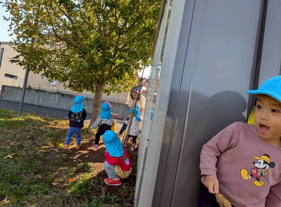 秋から冬へと変わりゆくこの頃。衣服をこまめに調整しながら、一段と寒くなる季節に負けず、元気いっぱいに戸外遊びも楽しんでいます。