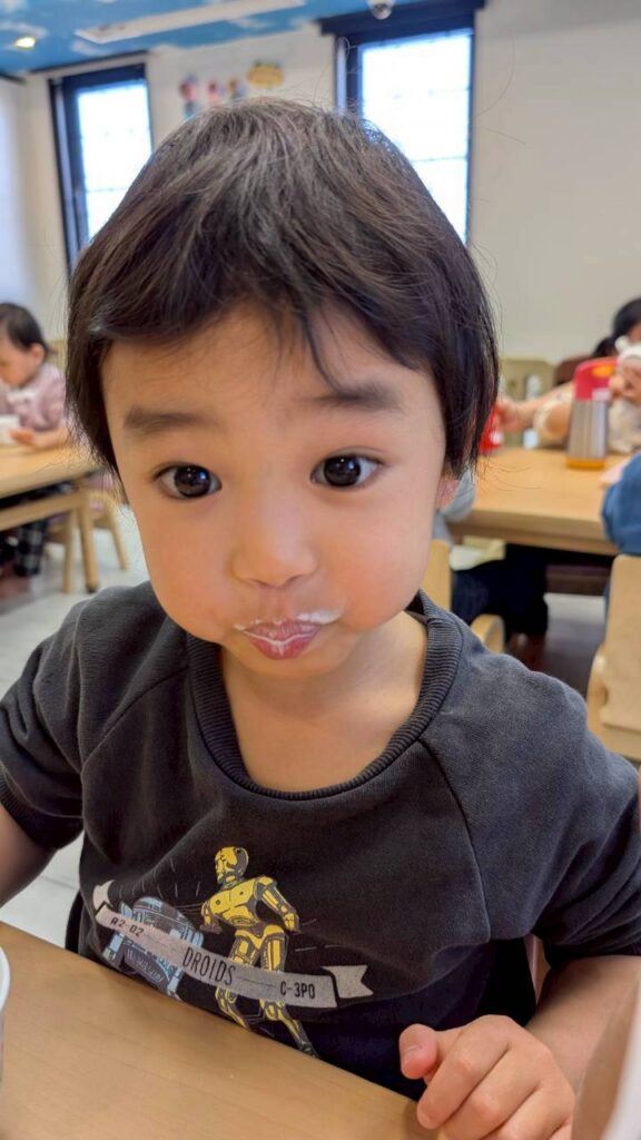 ちらほら不機嫌な子、ママと離れたくなくて泣く子もいましたが、すぐに泣き止みお友だちと遊んでいる姿を見て安心しました😊
