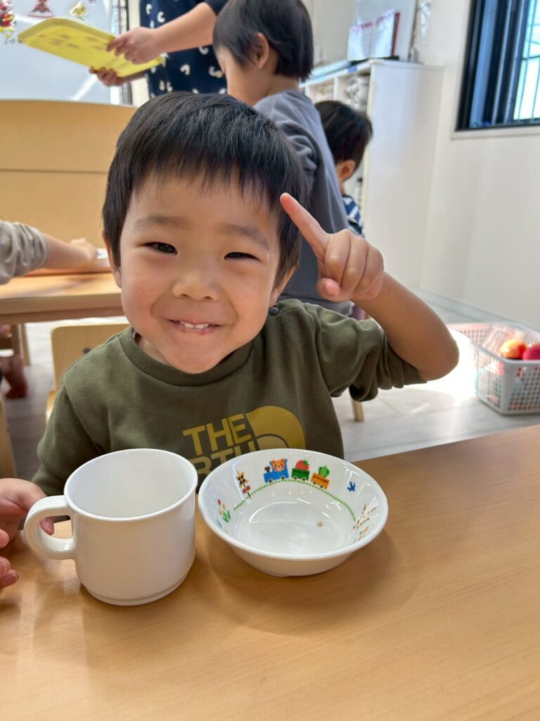 少し長いお休みだったので、園に来ること事を嫌がる子がいるかな~、と心配していましたが、ほとんどの子が元気いっぱい、笑顔で登園してきてくれました。