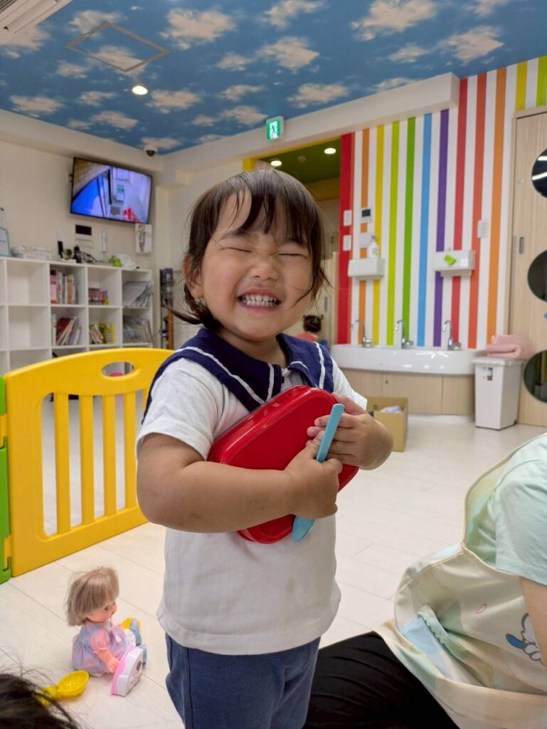 子どもたちは、ママとパパと離れるのが寂しいので朝から泣いちゃう子もいますが先生たちは1日でも早く慣れてもらえるよう頑張っています!!